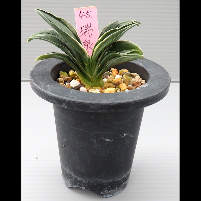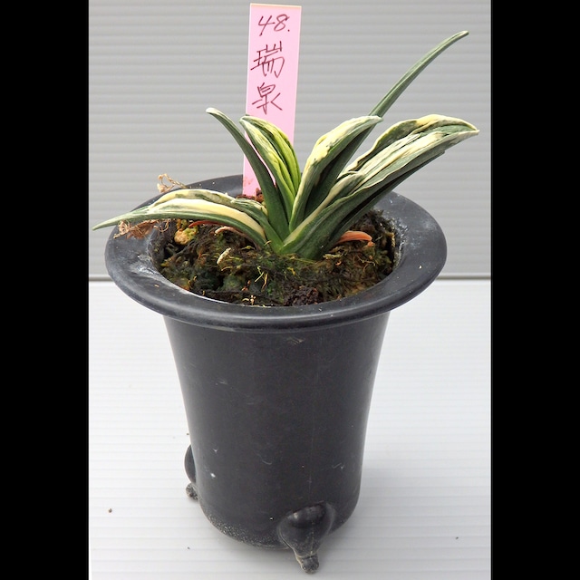 (This item is for people in Japan. If you are in EU or UK and would like to purchase the same item, please replace the “J” at the end of the Product Code with “E” and search for it. If you live anywhere else, please contact us.) 万年青「瑞泉」 no. 3 商品コード:339J 当初株分けされたときは、大きい方に80万、小さい方に75万の値がついた、という名品。幸いなことに子出しがよく、価格が下がったため、お手頃な価格で入手できる名品として入門種の代表格となりました。 青(斑なし)、覆輪のみ、縞覆輪、図入りとバラエティーがあり、好みにもよりますが、青<覆輪のみ<縞覆輪<図入りの順に価値が上がっていきます。当店では、特に断りがなければ、「覆輪のみ」となります。 提供:中村園