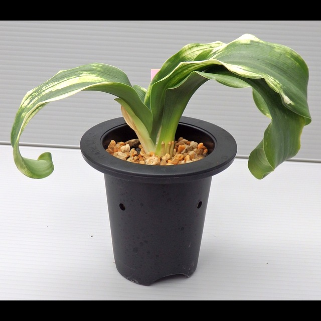 (This item can only be shipped within Japan. Please see below about how to purchase the same item from outside Japan.) 万年青「最晃閣」 no. 2 商品コード:344J 「晃明殿」型の大型羅紗品種。葉先の尖る葉肉の厚い中立ち葉に、深い白覆輪と総雅糸竜、剣葉などの芸を現します。 強健で、施肥も採光も強めに育てます。 提供:中村園 (If you would like to purchase this same item from outside Japan, you can do so by replacing the “J” with “E” at the end of the product code and enter it in the “Search items” box. For example, if the product code is “100J,” enter “100E” in the Search items box on the Home page and you will be presented with the same item that can be shipped overseas. Or you can participate in the Group Order that is held periodically, if you live in U.S.A. [except Hawaii].)