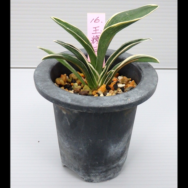 (This item can only be shipped within Japan. Please see below about how to purchase the same item from outside Japan.) 万年青「雪雷」 no. 3 商品コード:311J 縞甲系小型品種。雪白の矢筈斑を鮮明に出すには、施肥・採光・通風を強めにします。 提供:中村園 ******* Omoto (Rohedea japonica) 'Setsurai' no. 3 Product Code: 311J A small cultivar of the shimakou line. To bring out its snow-white yahazu torafu (herringbone variegation, though it can take any shape), give it plenty of fertilizer, light, and wind. Nursery: Nakamuraen (If you would like to purchase this same item from outside Japan, you can do so by replacing the “J” with “E” at the end of the product code and enter it in the “Search items” box. For example, if the product code is “100J,” enter “100E” in the Search items box on the Home page and you will be presented with the same item that can be shipped overseas. Or you can participate in the Group Order that is held periodically, if you live in U.S.A. [except Hawaii].)