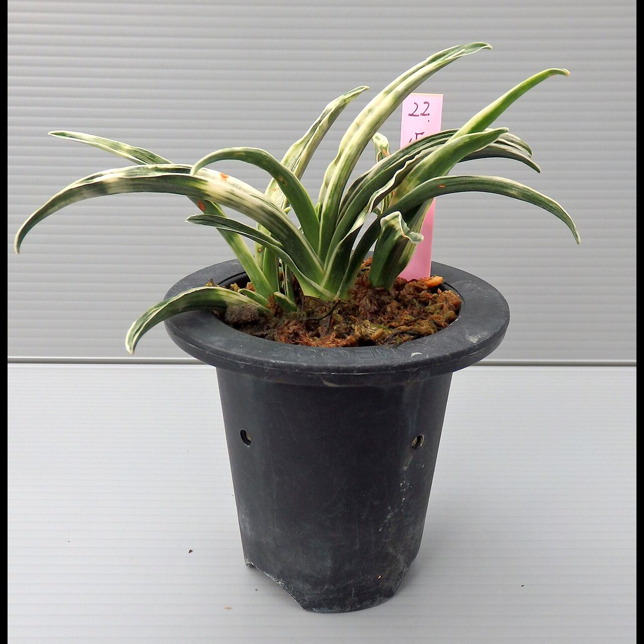縞甲系小型品種。雪白の矢筈斑を鮮明に出すには、施肥・採光・通風を強めにします。