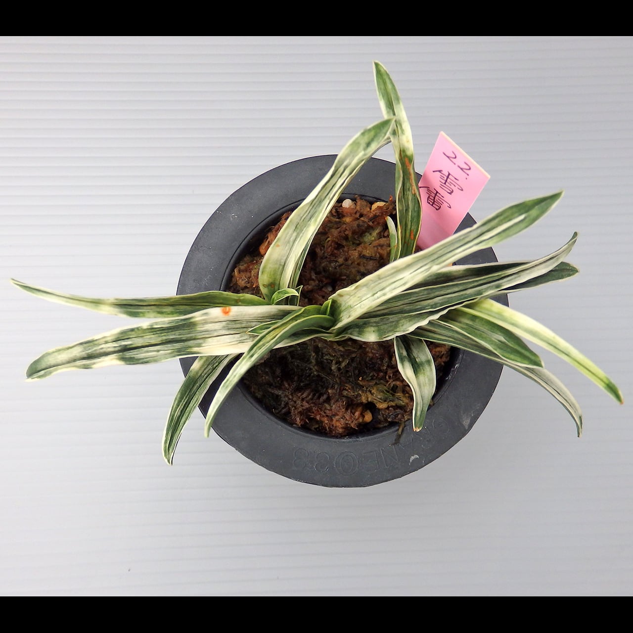 A small cultivar of the shimakou line. To bring out its snow-white yahazu torafu (herringbone variegation, though it can take any shape), give it plenty of fertilizer, light, and wind.