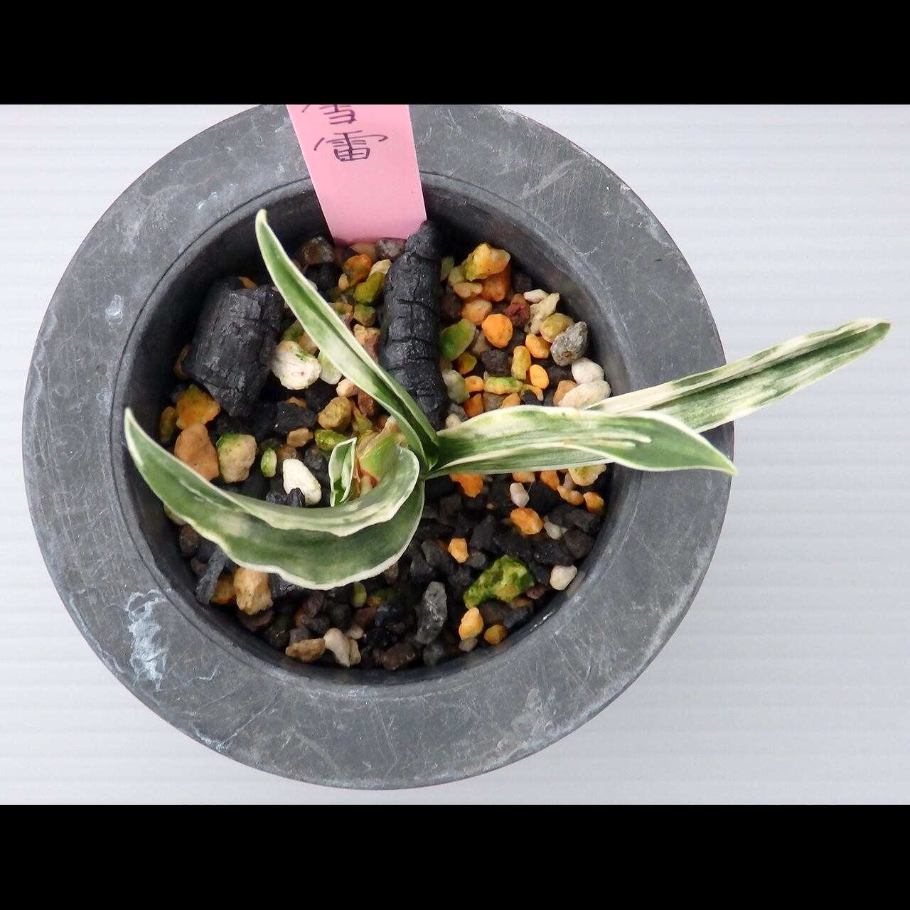 A small cultivar of the shimakou line. To bring out its snow-white yahazu torafu (herringbone variegation, though it can take any shape), give it plenty of fertilizer, light, and wind.