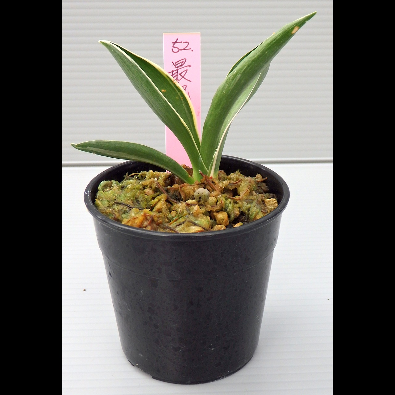 A large rasha variety. Its pointy, thick leaves develop wide white furkuin (variegation around the edges) and sougashiryu (lengthwise ridges all over the leaves).