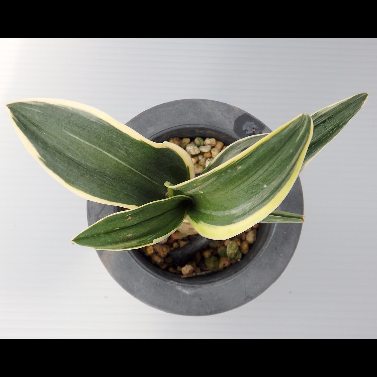 One of the best-known maruba (round-leafed) rasha varieties. It will not manifest any strong hagei (formal mutation), except for noshiha (leaves with both sides folded in) and occasional gashiryu (multiple lengthwise ridges), but deep green surrounded by white fukurin (variegation around the edges) emits graceful beauty.
