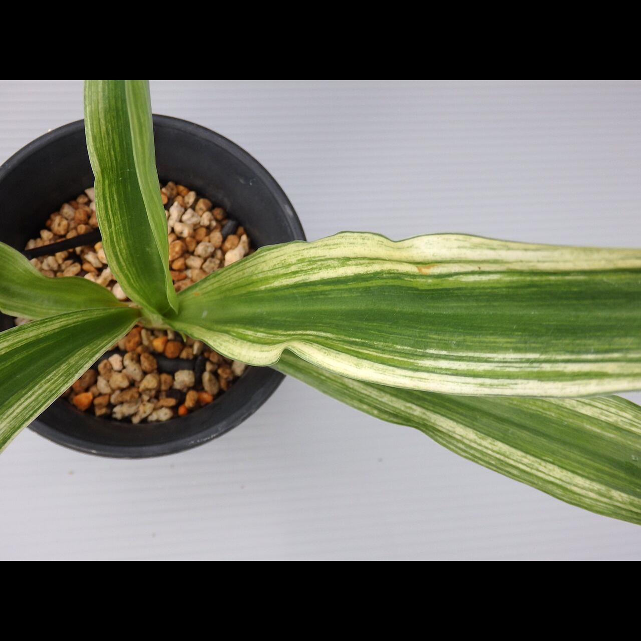 A large oha cultivar that can grow to be as tall as 50 cm. Bright sunako-fu (variegation like scattered sand) will develop on its wide, standing leaves.
