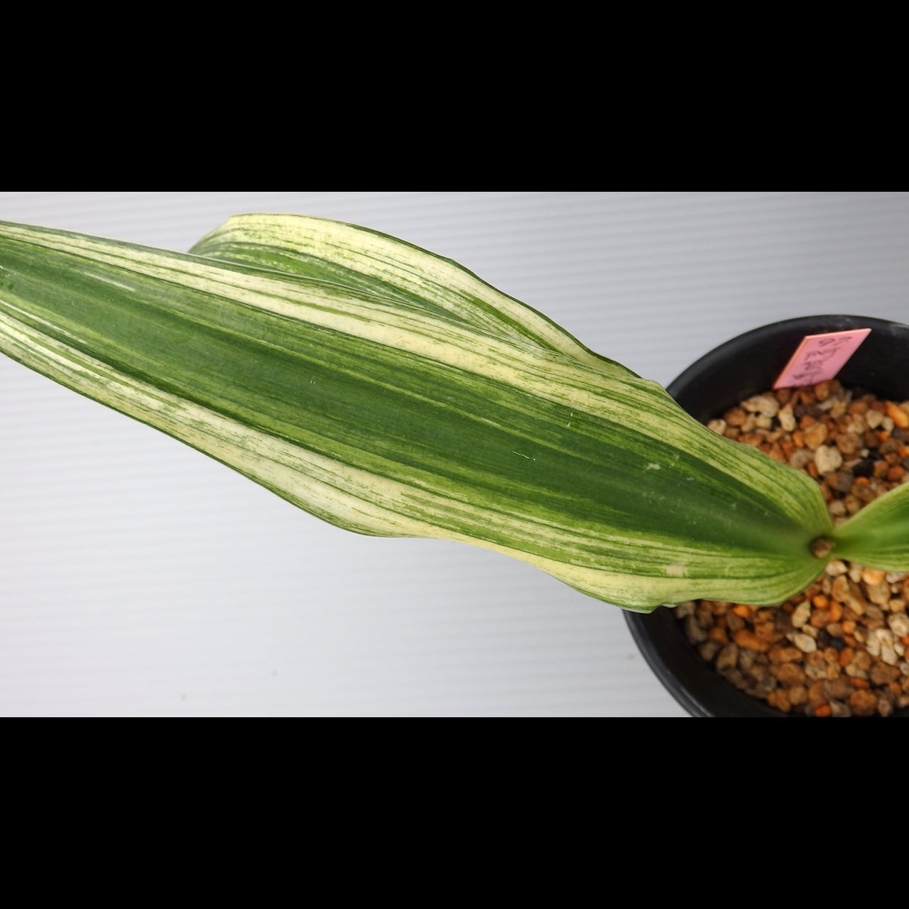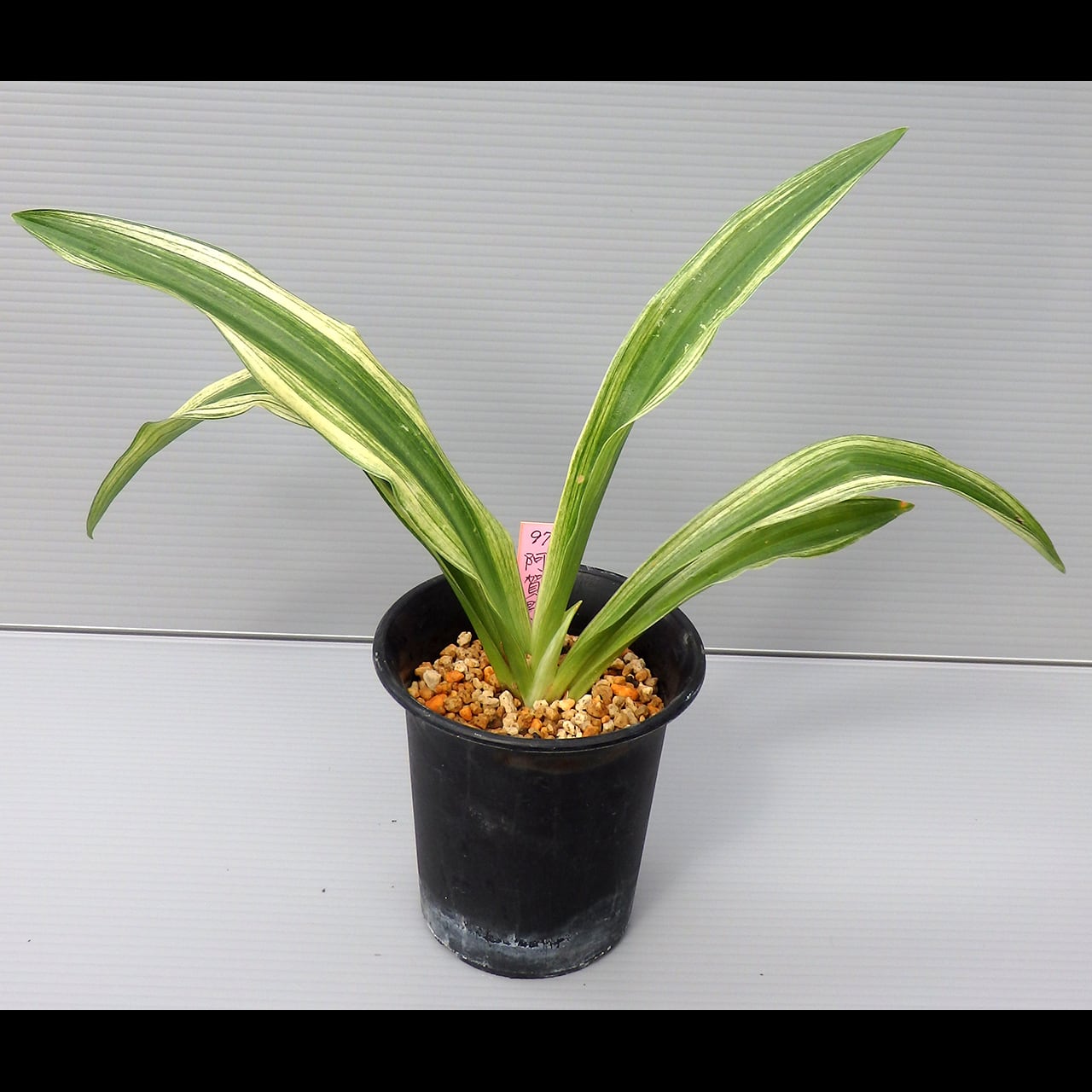 A large oha cultivar that can grow to be as tall as 50 cm. Bright sunako-fu (variegation like scattered sand) will develop on its wide, standing leaves.