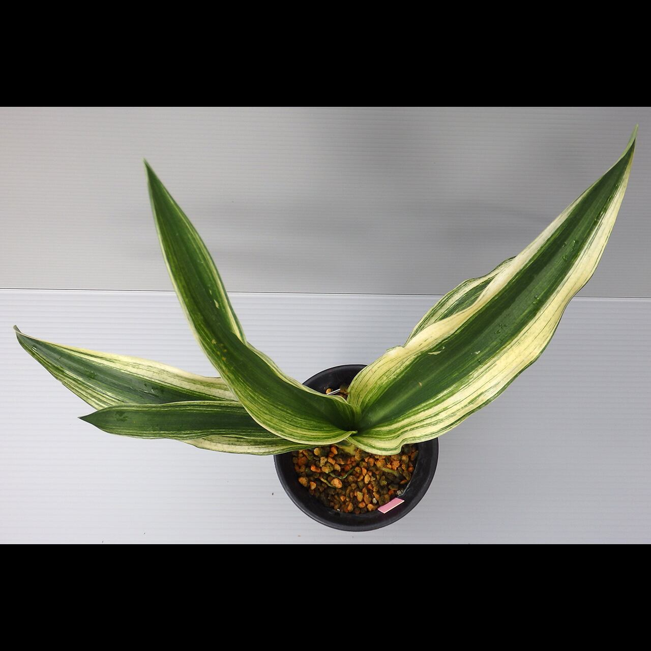 A large oha cultivar that can grow to be as tall as 50 cm. Bright sunako-fu (variegation like scattered sand) will develop on its wide, standing leaves.