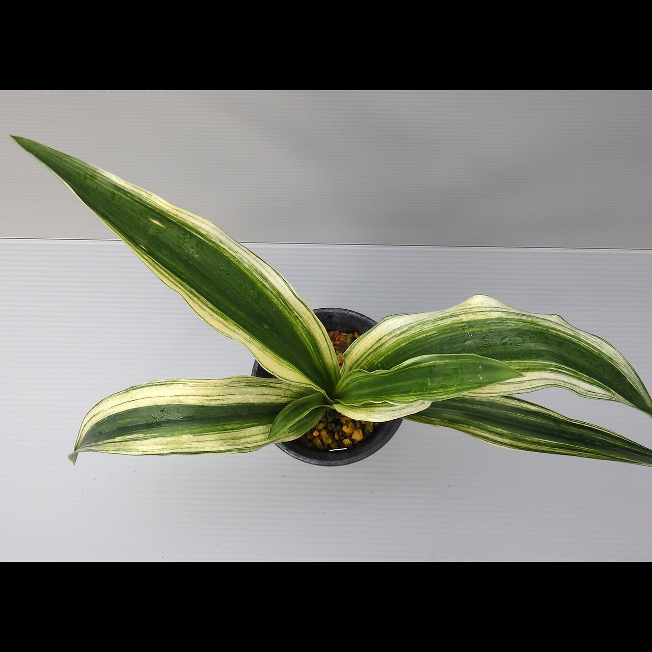 A large oha cultivar that can grow to be as tall as 50 cm. Bright sunako-fu (variegation like scattered sand) will develop on its wide, standing leaves.