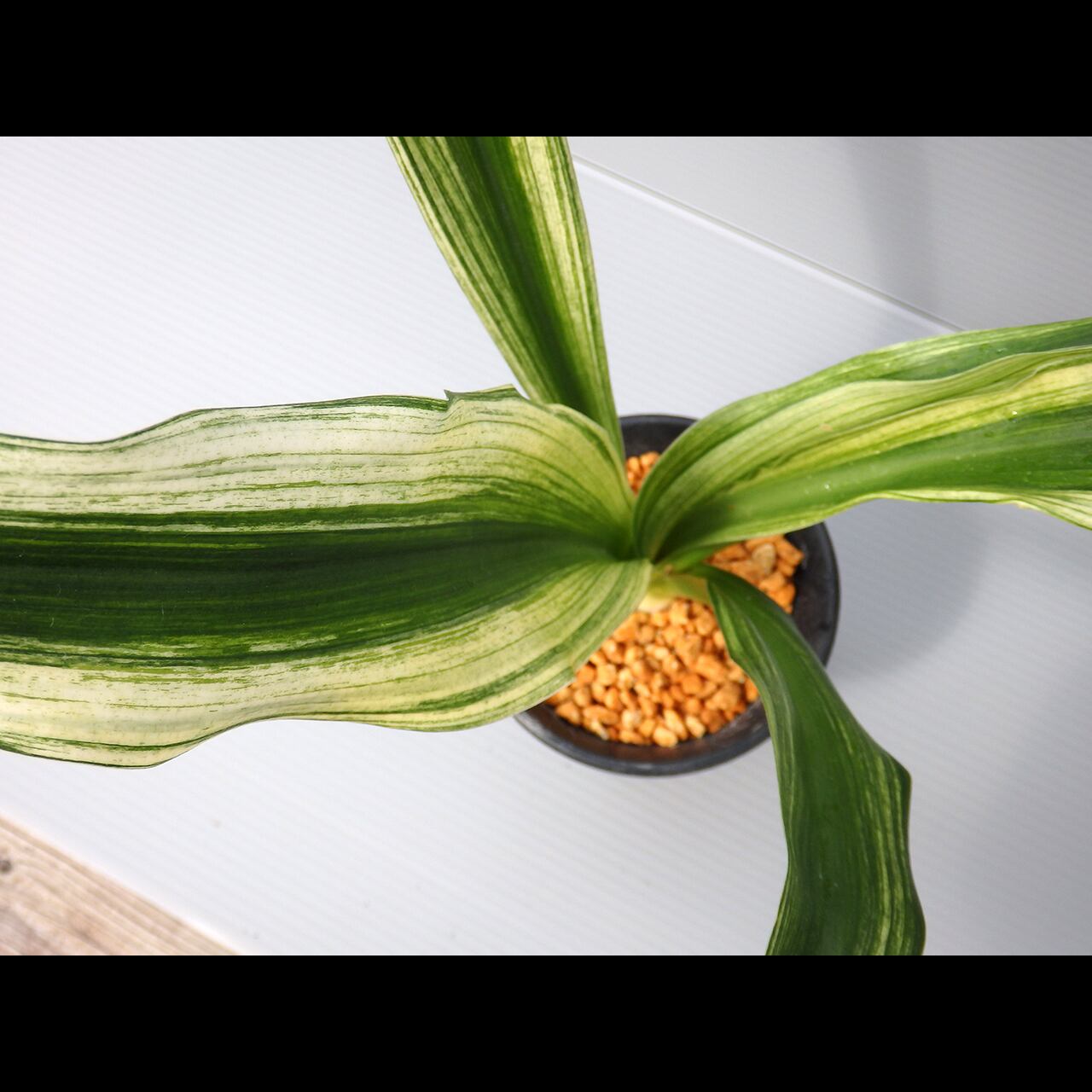 A large oha cultivar that can grow to be as tall as 50 cm. Bright sunako-fu (variegation like scattered sand) will develop on its wide, standing leaves.