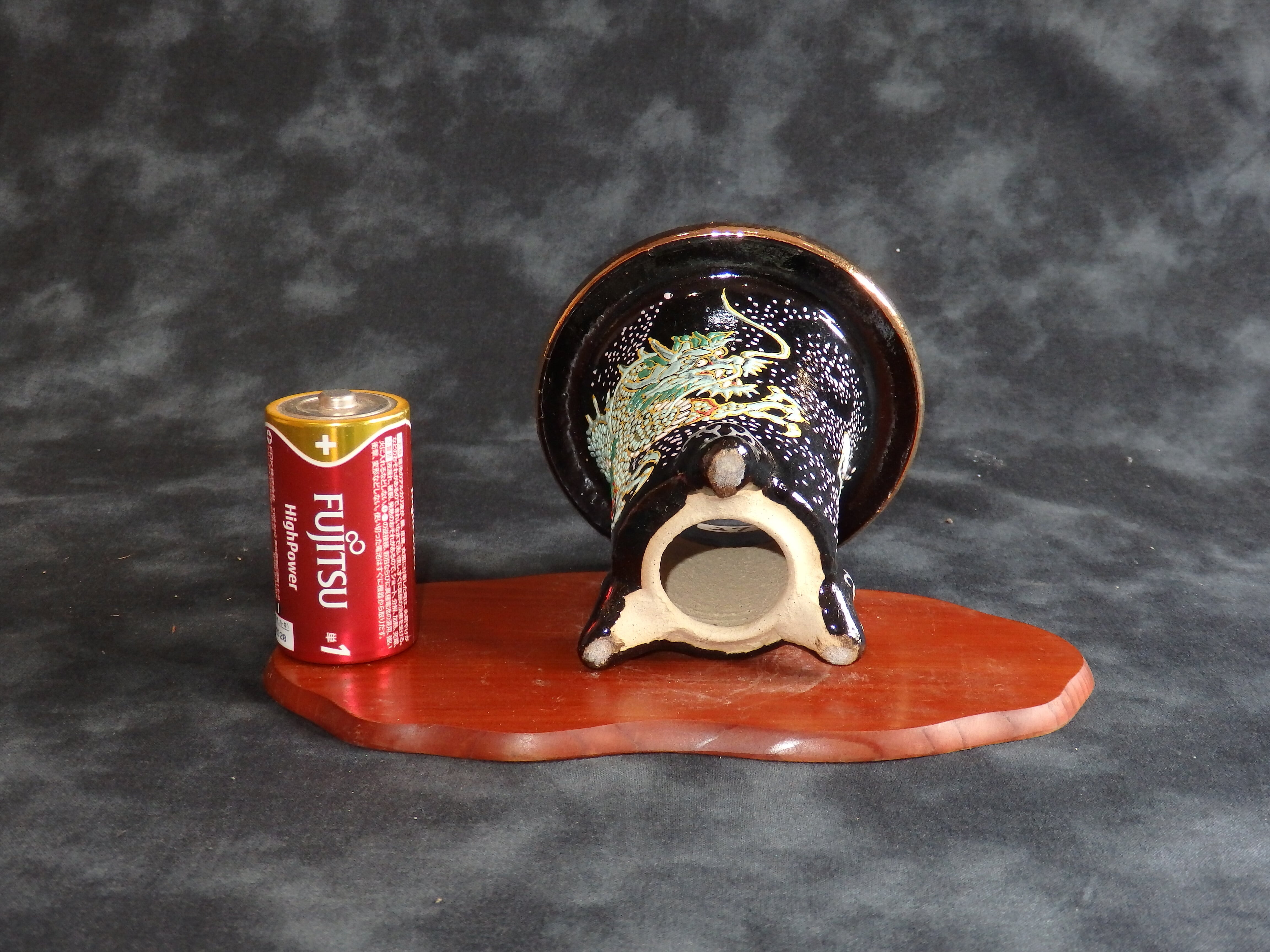 A nishikibachi is a decorative pot commonly used for exhibitions. Traditionally, pots of this shape were used for Omoto, but the current trend is to use them for Fukiran (Vanda/Neofinetia falcata) and succulent plants as well. This one was made by Airakuen, one of the best known nishikibachi (decorative pot) makers in Japan, if not in the world.