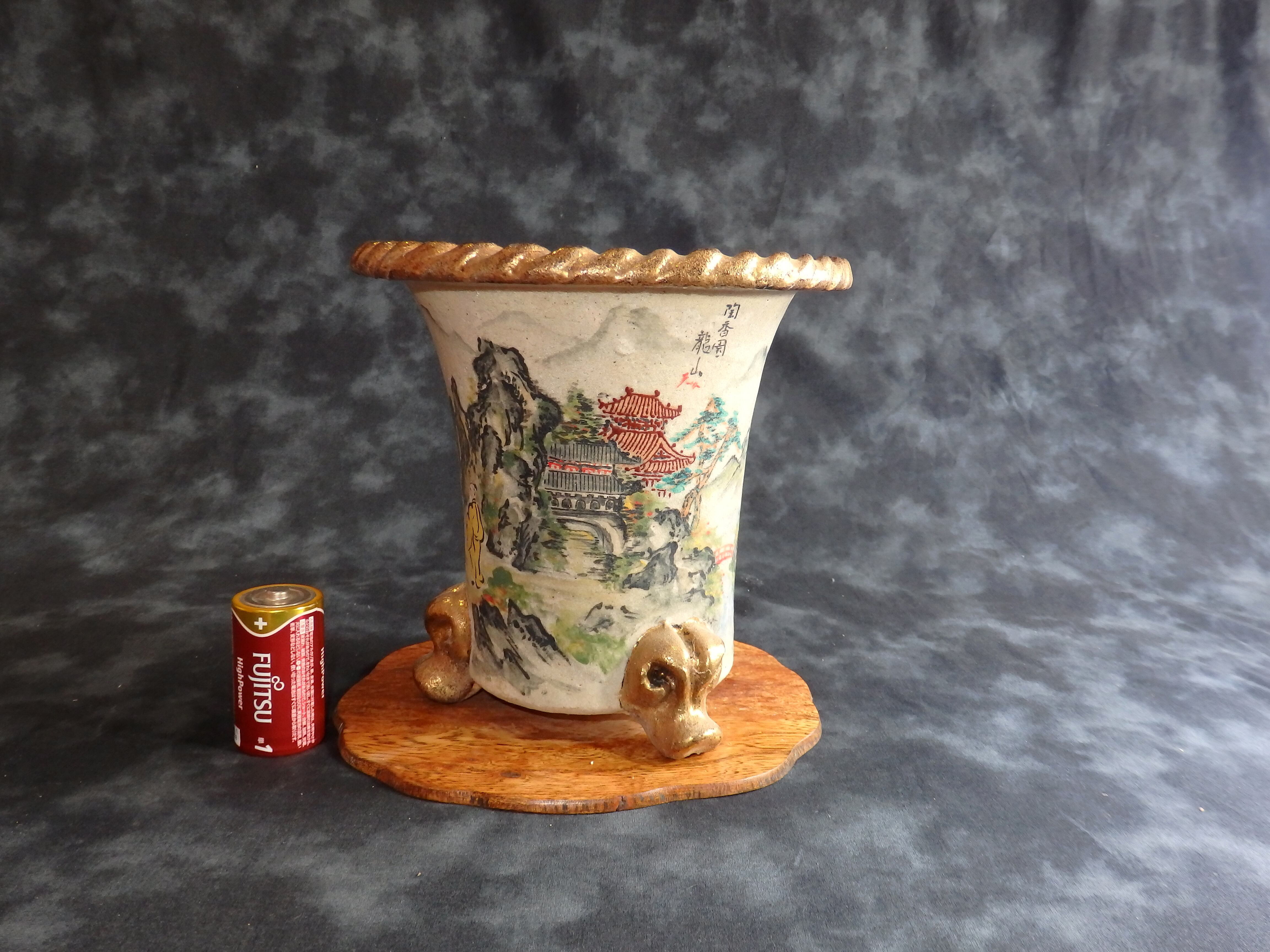 A nishikibachi is a decorative pot commonly used for exhibitions. Traditionally, pots of this shape were used for Omoto, but the current trend is to use them for Fukiran (Vanda/Neofinetia falcata) and succulent plants as well. This one was made by Airakuen, one of the best known nishikibachi (decorative pot) makers in Japan, if not in the world.