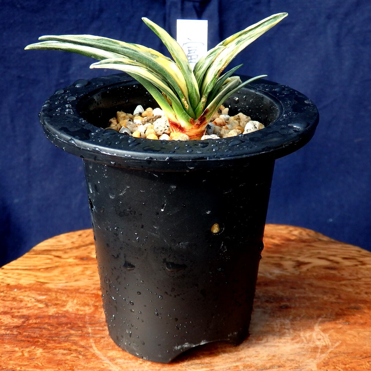 A medium-sized rasha variety which was sold for half a million yen in 1955. The thin white fukurin (variegation around the edge) will become wider and wider as it grows.